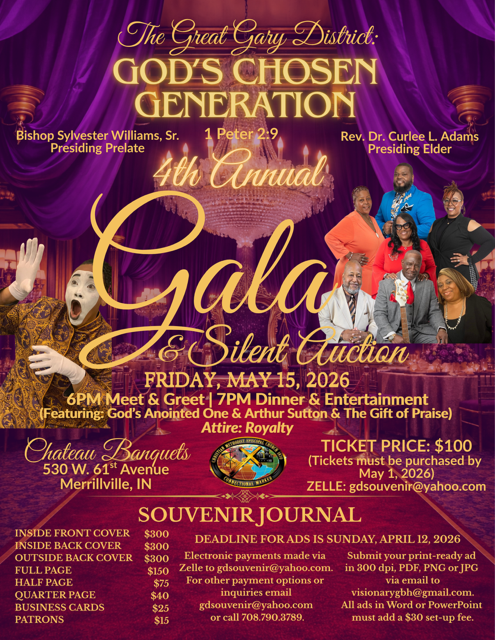 Welcome to the Great Gary District! The Gary District is a member of the Third Episcopal District of the Christian Methodist Episcopal Church. Our motto is drawn from the biblical text 1 John 4:4 Greater is He that is in you, then he that is in the world! As a District our goal is to do everything Great for our God, our Zion, our churches and our communities. We encourage you to take this time to browse through our website to discover more about our District and its churches. If you’re looking for a church home within the District, please take a look at the list of churches on our site to locate one near you.